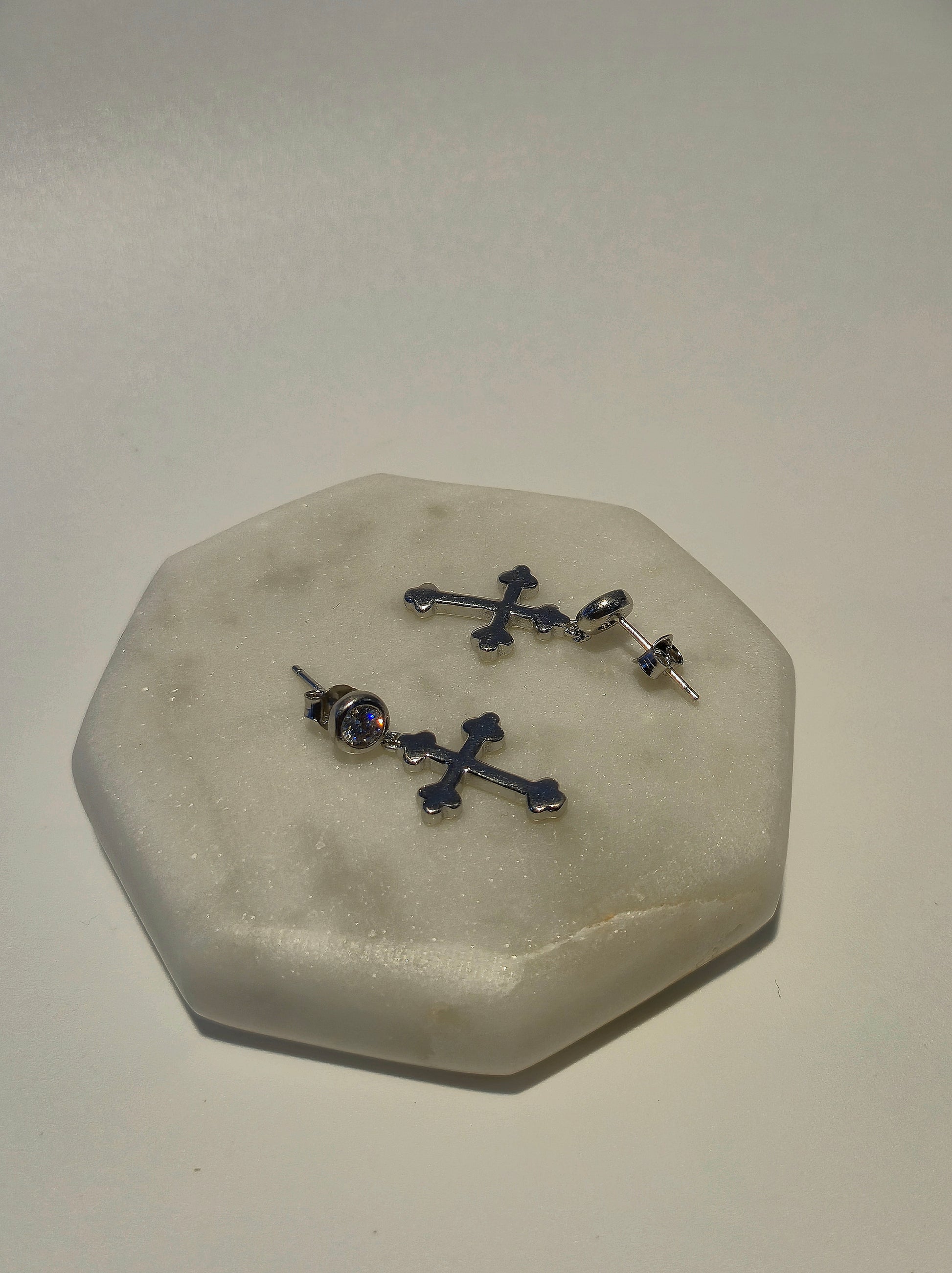 925 Silver cross symbol earring.