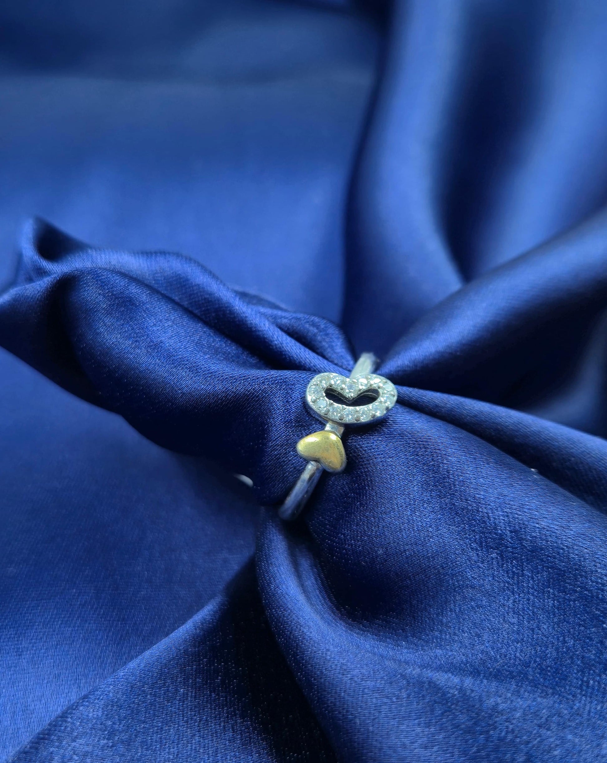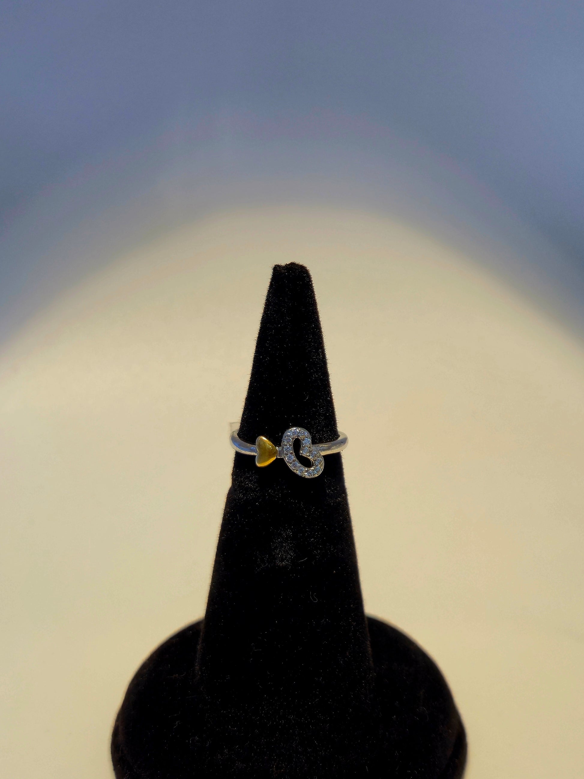 925 Silver Ring heart shaped with high quality Zarkan and golden colouring on the second heart.