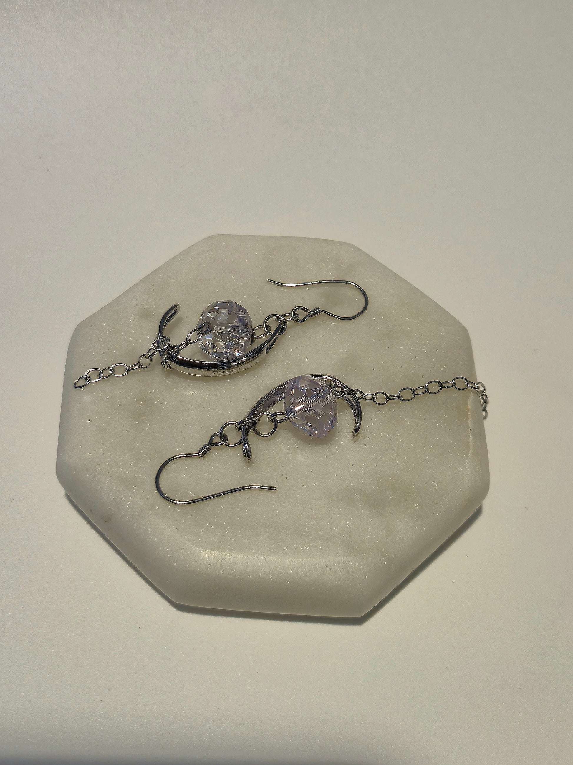 Fairy Crystal Crescent moon shaped Silver Dangle