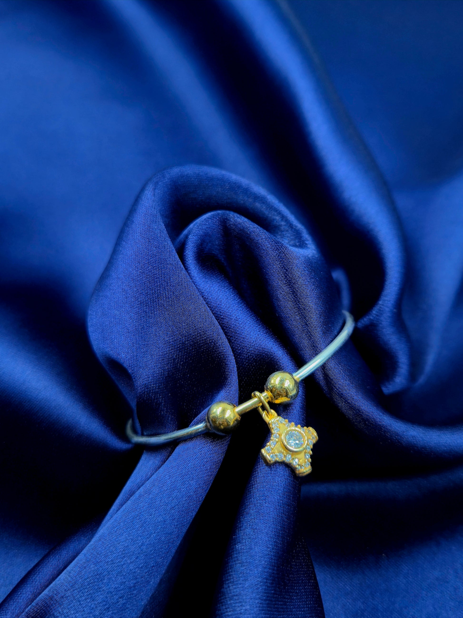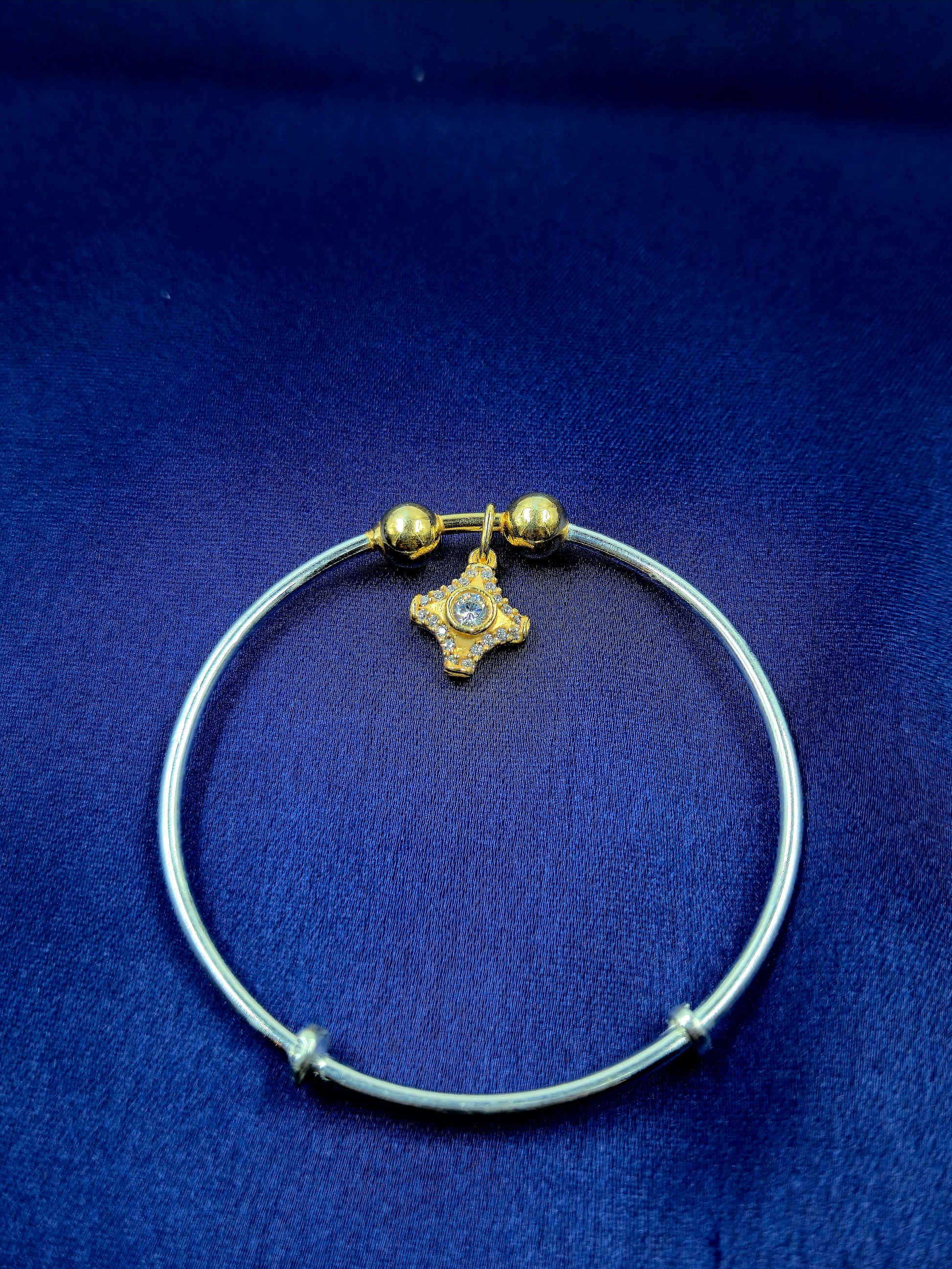 925 Silver Baby Bracelet with golden colour hanging charm.