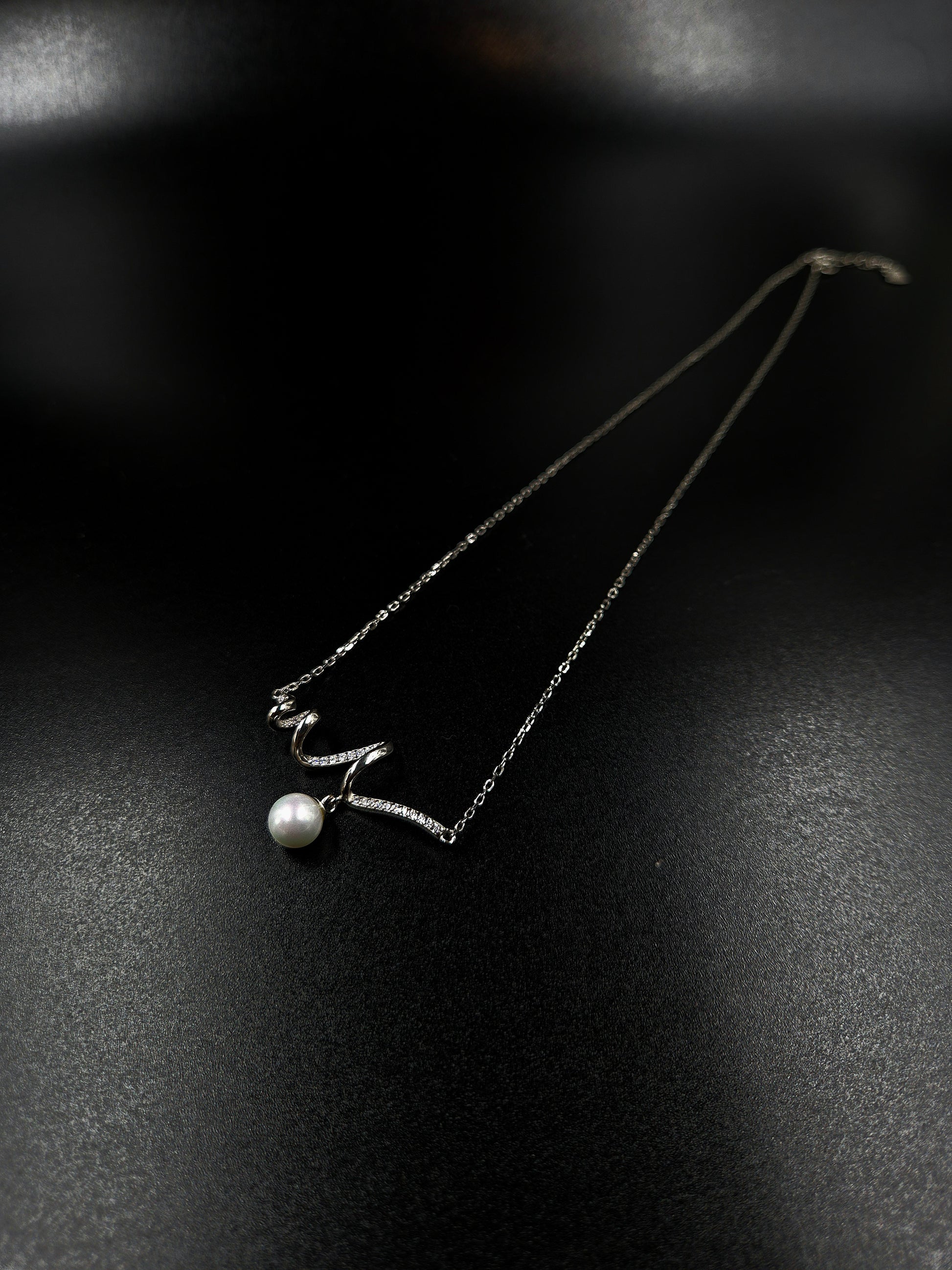 925 Silver Pearl Necklace with a spiral design a high quality zarkan stones.